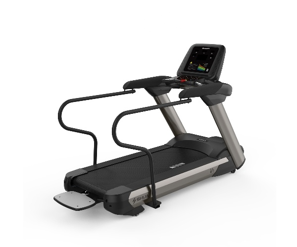 舒华V9尊享版跑步机SH-T899设有辅助上下机踏板的驱动踏板,控制速度在-5至10km/h内可调,坡度也可在-3至15%内可调,跑台尺寸是580×1570mm,持续马力是AC 3.0HP。