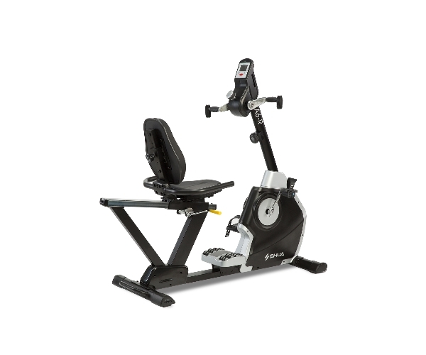 舒华卧式健身车A6-R SH-B5836R采用自发电式,拥有8段阻力系统,采用8段手段旋钮控制,飞轮重量是7kg,步幅为19寸。